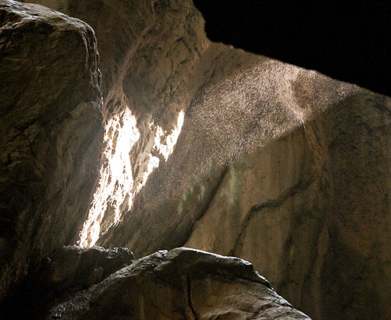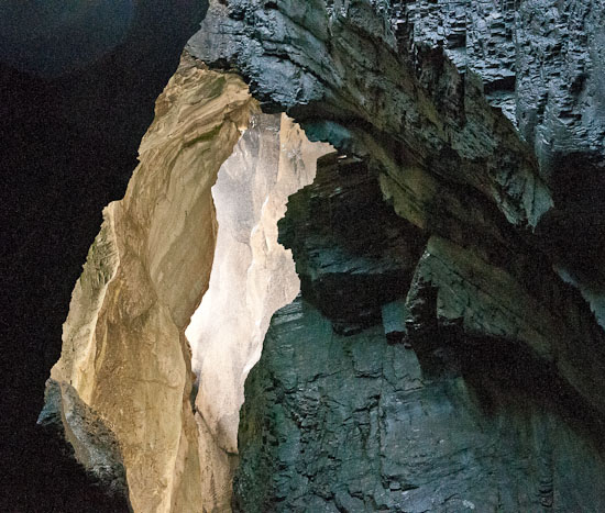 I took the photos in July in the glacier cave in Rosenlaui, Berner Oberland, Switzerland. No flash light, only sun light coming in from above.