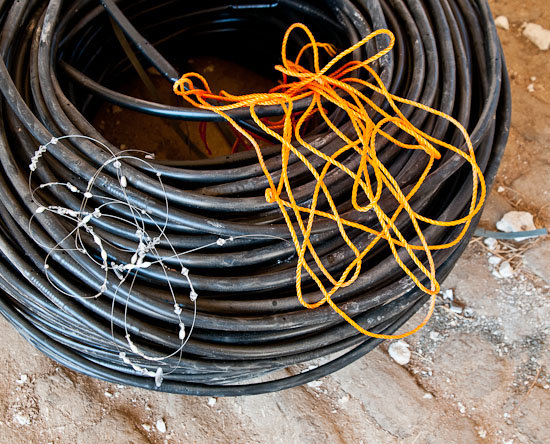 The first big print in place! In the beginning of March I asked for your help with choosing pictures for the yard. Today we put up the first one. Essam climbed and Annelie and I put the rope around the pillar.